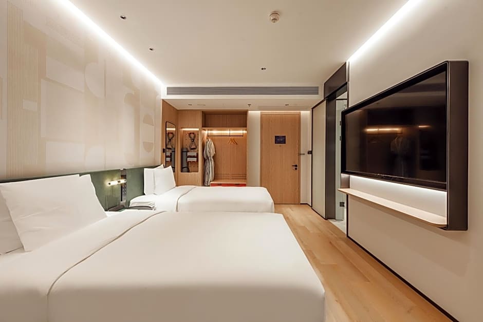 Providing free toiletries and bathrobes, this double room includes a private bathroom with a walk-in shower, a hairdryer and slippers. The spacious air-conditioned double room provides a TV with streaming services, soundproof walls, a mini-bar, a wardrobe as well as city views. The unit offers 2 beds.
